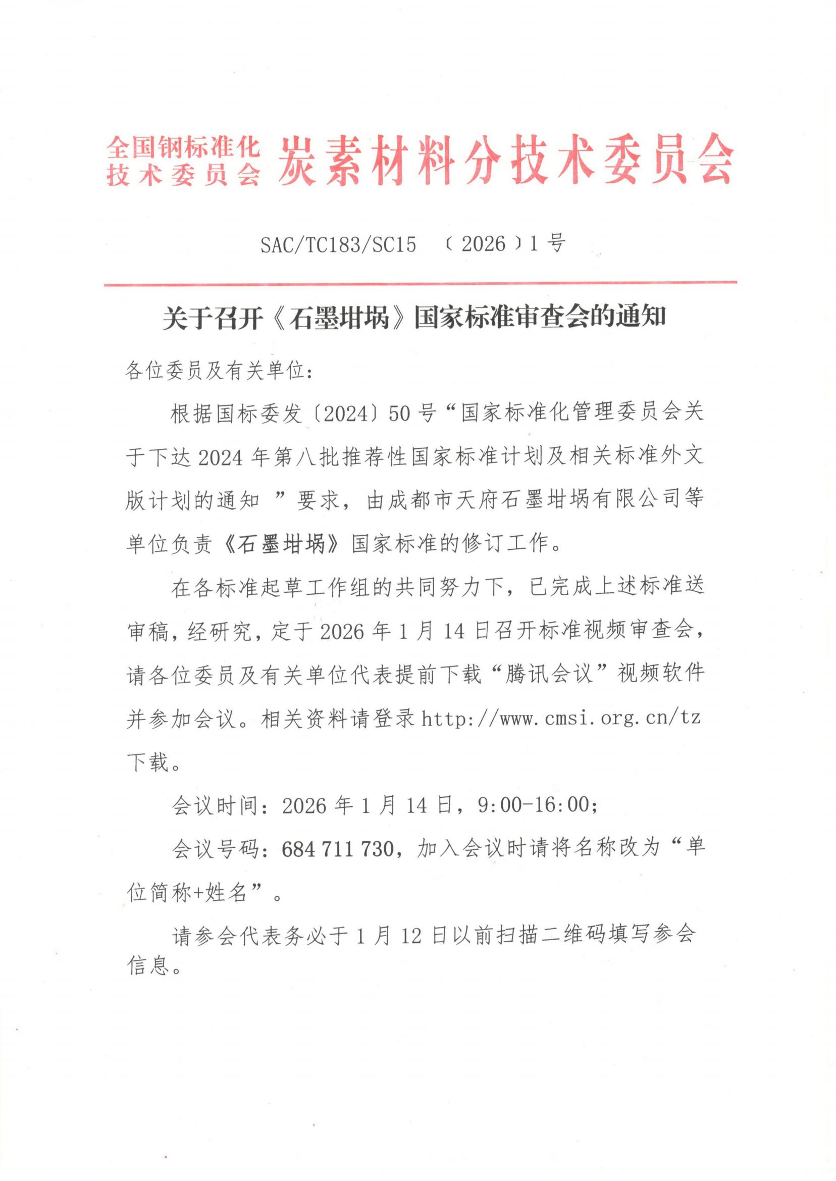 关于召开《石墨坩埚》国家标准审查会的通知